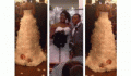 美一新娘婚礼将仅1个月的女儿绑在婚纱裙摆上拖着进场..
