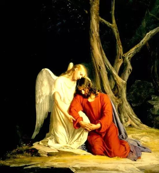 正当祂心里忧伤要死去,流汗水犹如血滴。